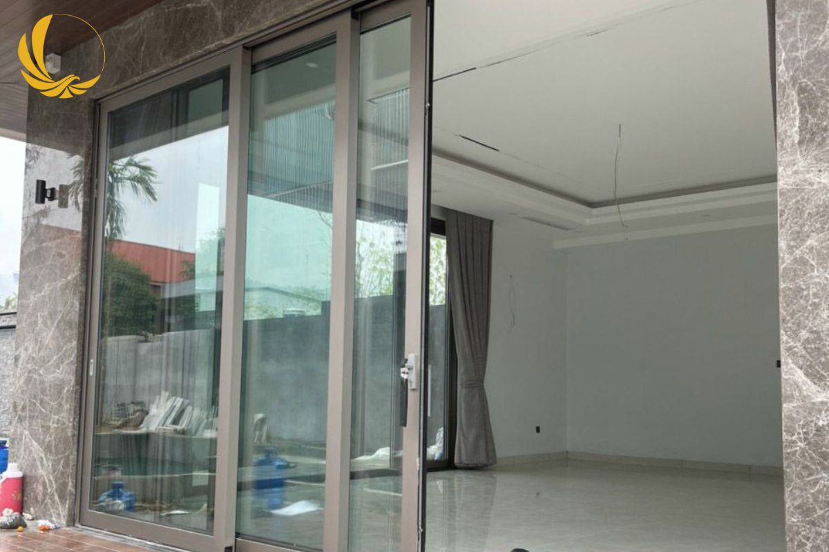 Mẫu 4: Mẫu vách kính cố định nhôm xingfa 2 cánh trượt cho biệt thự cao cấp